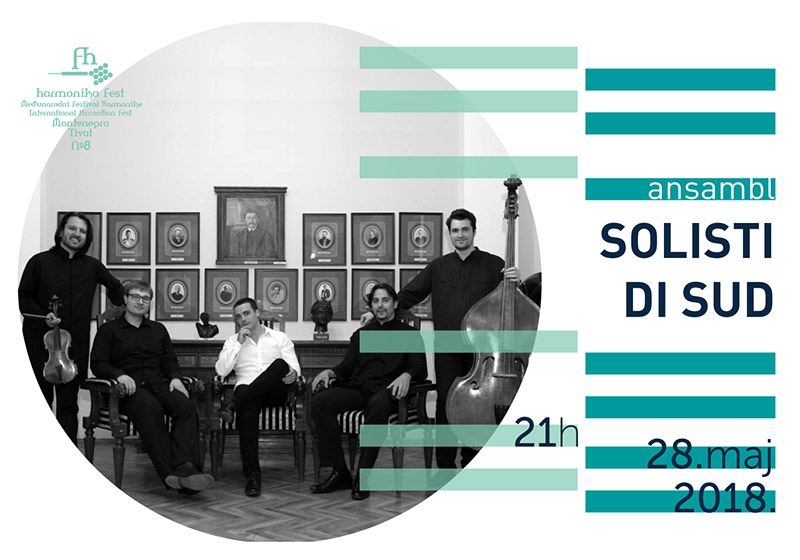 Established in 2015, Solisti di sud has been described as an ‘exceptional’ ensemble ‘of the highest level’, with a ‘strong and highly individual voice’. All members of group are profesional musicians and Proffesors at Universities and Conservatories. Their adventurous programming and virtuoso performances display extraordinary aproach to an individual concept of music interpretation. They perform Piazzolla music and colourful combination of classical masterpieces and music with original arrangements. First recording that thay made, get them on first place on Naciolal radio in Serbia in serial of “Classical music please”. Soon thay got invitations from Europe and very positive critics. Members: Bojan Mladenovic – accordion, Jovan Bogosavljevic – violin, Petar Mladenovic – piano, Vladan Karadzov – contrabass, Bojan Videnovic- cajon, tromboune and voice.